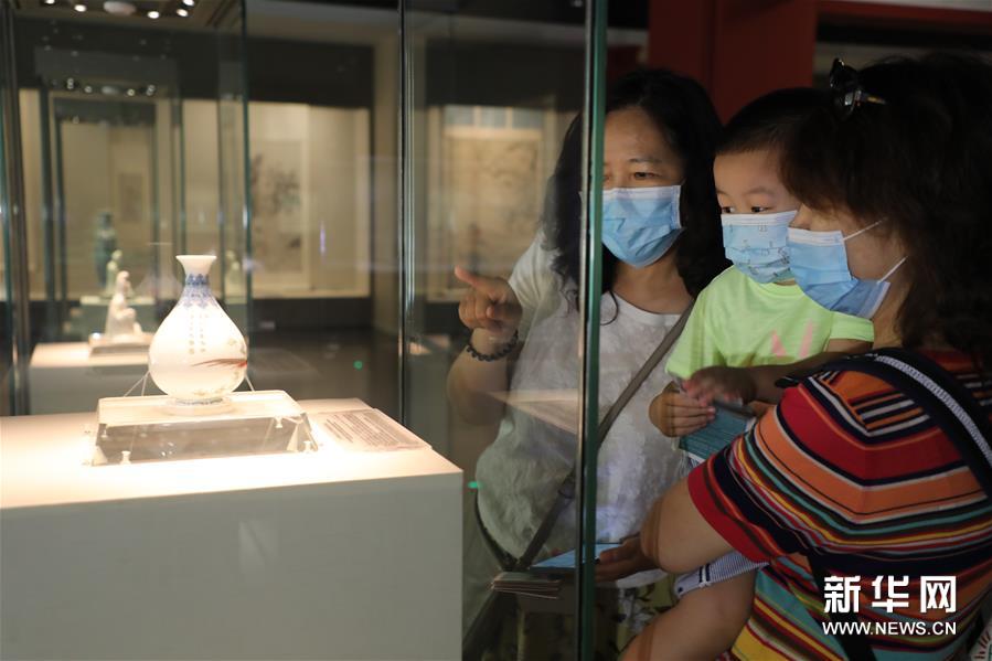 觀眾在天津博物館觀賞琺瑯彩玉壺春瓶(6月23日攝)。新華社記者 周潤(rùn)健 攝