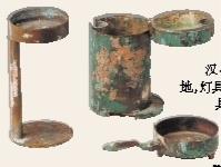甘肅省博物館收藏了一件漢代燈具——啟合銅燈。這件銅燈出土于秦安縣袁家村。大概是朽得太厲害了吧,這件圓柱形的燈具看上去有些不起眼,就像一個銹跡斑駁的圓筒子。小心地打開它,卻不然,設(shè)計得別有玄機(jī)呢。這只筒狀銅燈一體三盞,非常精妙。最上層照例是蓋,可以卸下,蓋面有三鈕,蓋側(cè)有柄以活鉚套連,翻轉(zhuǎn)成燈盤。燈身呈圓筒形,一側(cè)有半圓柱形側(cè)槽,底為三層,中層系半活動底,以半圓柱軸相連接。第二層燈盤可轉(zhuǎn)動。全器能旋轉(zhuǎn)啟合,設(shè)計匠心獨具。