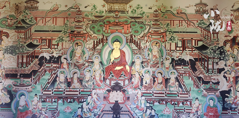 近日,一副長15米、高6米的大型臨摹復制敦煌壁畫《無量壽經(jīng)變》在武威鳩摩羅什寺完美竣工,將于近期對外開放。