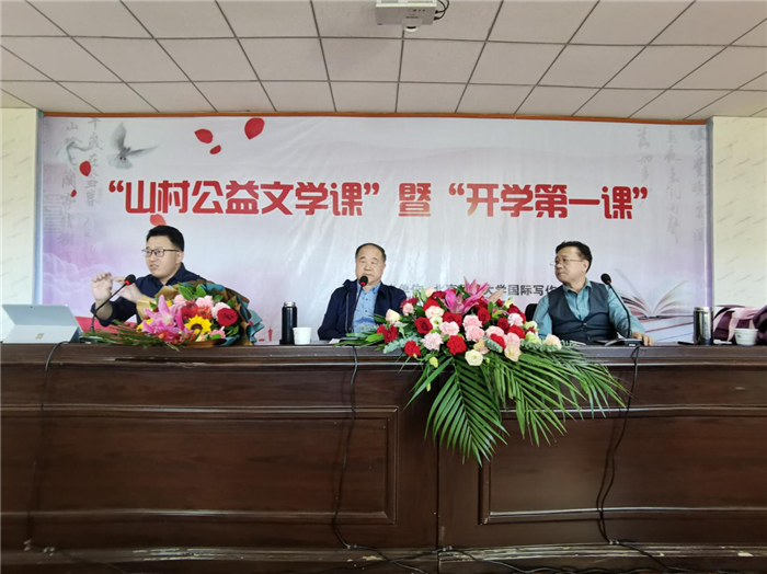 中國(guó)甘肅網(wǎng)9月6日訊 9月6日上午九點(diǎn),由北京師范大學(xué)國(guó)際寫(xiě)作中心、武威市教育局、武威市文體廣電和旅游局、涼州區(qū)教育局共同主辦的“山村公益文學(xué)課”暨“開(kāi)學(xué)第一課”在武威第十一中學(xué)開(kāi)講?;顒?dòng)由武威第十一中學(xué)趙衛(wèi)國(guó)校長(zhǎng)主持。諾貝爾文學(xué)獎(jiǎng)獲獎(jiǎng)作家、北京師范大學(xué)國(guó)際寫(xiě)作中心主任莫言教授以《讀書(shū)與寫(xiě)作》為題,為十一中的師生講了一堂別開(kāi)生面、深入淺出的寫(xiě)作課。隨后,北京師范大學(xué)國(guó)際寫(xiě)作中心主任助理翟文鋮教授、西北師范大學(xué)傳媒學(xué)院院長(zhǎng)徐兆壽教授,分別就同學(xué)們的作文進(jìn)行了現(xiàn)場(chǎng)指導(dǎo)。參加此次活動(dòng)的還有北京舒同文化研究會(huì)會(huì)長(zhǎng)王振先生、北京師范大學(xué)國(guó)際寫(xiě)作中心主任助理張曉琴教授。