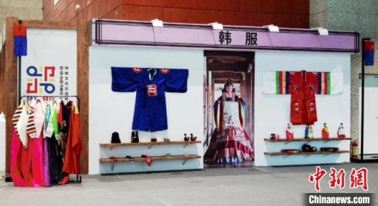 9月24日,“一會(huì)一節(jié)”期間,極具“韓風(fēng)”的主賓國(guó)韓國(guó)館在甘肅省敦煌市開(kāi)館。圖為傳統(tǒng)韓服展示?!《∷肌z