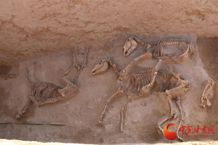 2021年,考古項目組對新發(fā)現(xiàn)的天祝縣祁連鎮(zhèn)長嶺-馬場灘區(qū)3座墓葬進行了考古發(fā)掘,發(fā)掘面積600平方米。3座墓葬均為帶斜坡墓道的單室磚室墓,其中馬場灘M1還附帶一側(cè)室,甚為獨特。墓道內(nèi)均殉有整馬,1-3匹不等,墓室均遭盜掘,頂部坍塌,北側(cè)設(shè)磚砌棺床,共出土各類文物290余件。