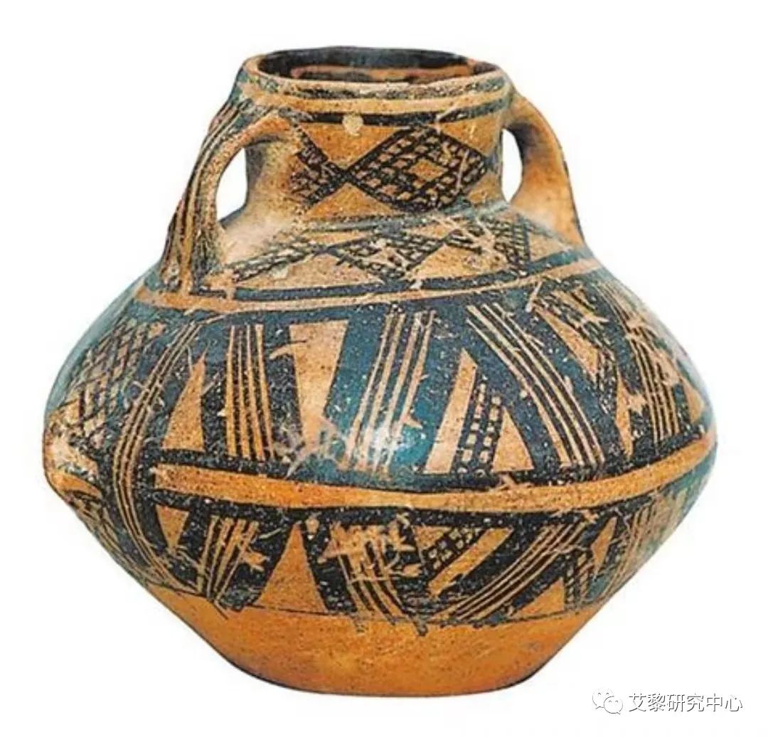 深入考察“四壩文化”遺址的布局,會發(fā)現(xiàn)一個很有趣的現(xiàn)象:幾乎所有的遺址都與水源毗鄰。山丹四壩灘位于古弱水南岸和川口河?xùn)|岸之間開闊平臺之上,三面環(huán)水;山丹山羊堡灘和壕北灘遺址都在古山丹河南岸,臨水而居;民樂東灰山位于古弱水支流童子壩河的古河道之上,地形平坦,水源充足;酒泉干骨崖、玉門火燒溝都位于在古疏勒河邊的臺地上……而“四壩文化”遺址出土的陶器多有類似耕地的平行波折紋、水域波浪紋、月牙形的魚頭紋和網(wǎng)狀紋,這些圖形紋飾,自然來源于先民們的生活場景,也是他們耕種土地和打魚狩獵的實(shí)物見證。