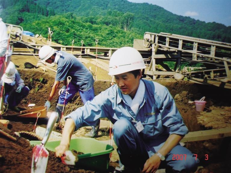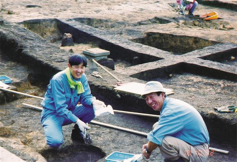在日本秋田縣佛田柵跡遺址發(fā)掘(左為趙雪野)