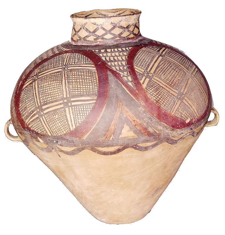 姓名:馬家窯文化半山類型四大圓圈雙耳彩陶罐 出生年代:距今約4650—4350年左右 住址:永靖縣博物館 體型:高46.6厘米,口徑15.6厘米,底徑12.2厘米 自我描述: 我是半山類型中的精品,屬于國家一級文物。泥質(zhì)紅陶,口沿微侈,直粗頸,闊肩,鼓腹,平底,腹有對稱雙耳,施黑紅彩,內(nèi)口飾水波紋六組,外口飾網(wǎng)紋,肩腹飾四大圓圈旋渦紋,間飾弧線鋸齒紋,腹中部飾寬帶紋,水波紋各一條,器型個(gè)體較大,胎體光滑,紋飾精致,色彩鮮艷。