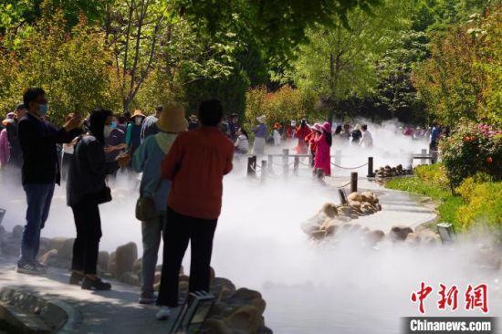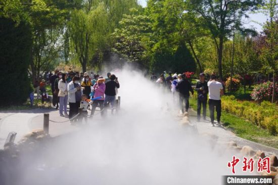 5月16日,甘肅蘭州,寓言故事園化身“瑤池”仙境美景,吸引不少市民前來(lái)觀(guān)賞、拍照。 九美旦增 攝
