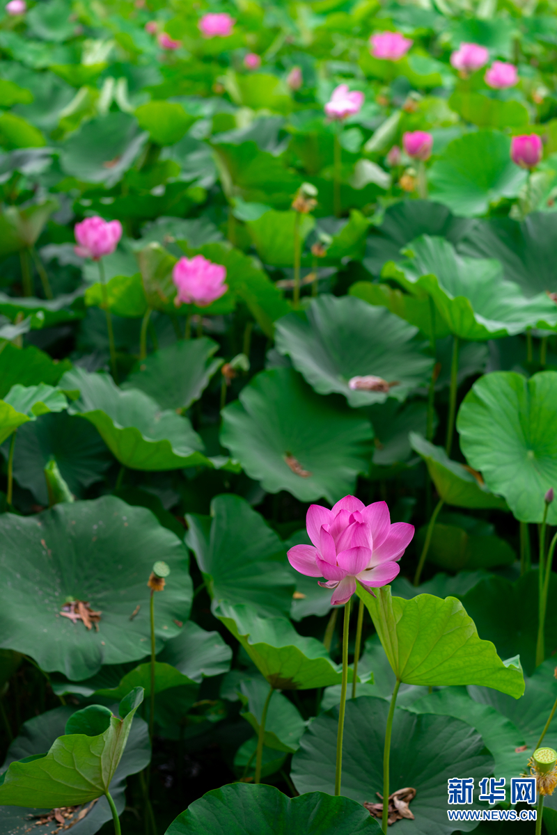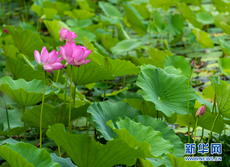 盛夏時(shí)節(jié),甘肅省隴南市成縣裴公湖里的荷花競相綻放,在炎炎夏日中帶來一絲清涼。新華網(wǎng)發(fā)(陳爭強(qiáng) 攝)