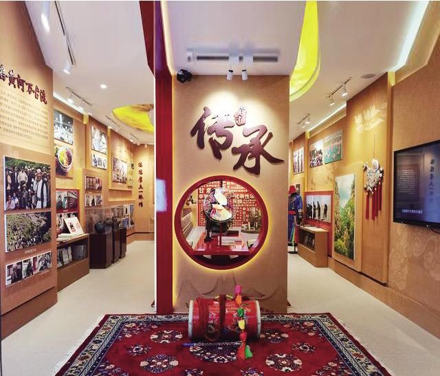 展廳由序言和“滔滔黃河萬古流”“悠悠厚土一脈傳”“交響絲路民族和”三個部分組成。其中,“滔滔黃河萬古流”展示了發(fā)源于黃河流域的花兒、蘭州黃河大水車制作技藝、蘭州牛肉面制作技藝、洮硯制作技藝等非遺代表性項目,彰顯了獨特的黃河魅力、地域文化和民族風情。