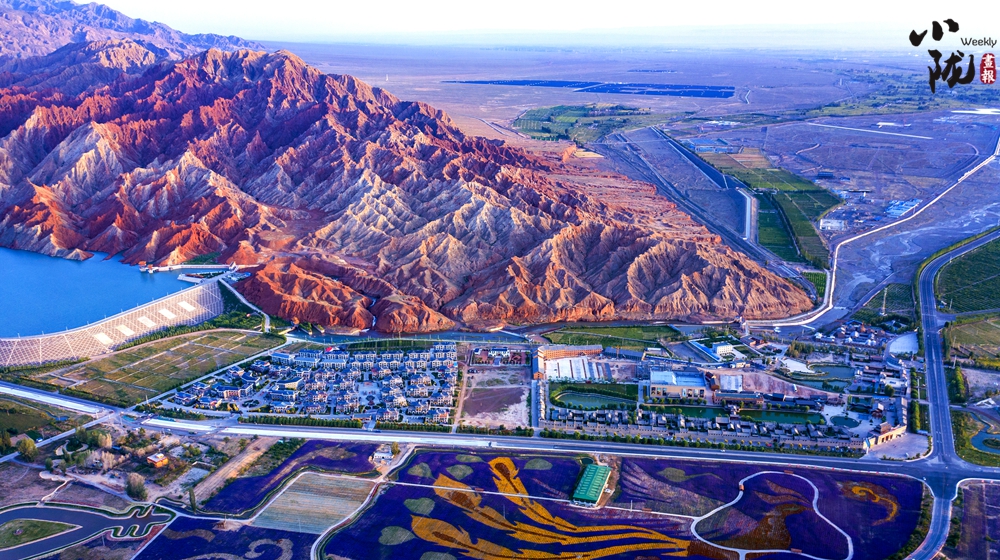 紅山灣水庫與丹霞國家地質(zhì)公園山水相映,展現(xiàn)了“戈壁水鄉(xiāng)”的生態(tài)和諧新形象。