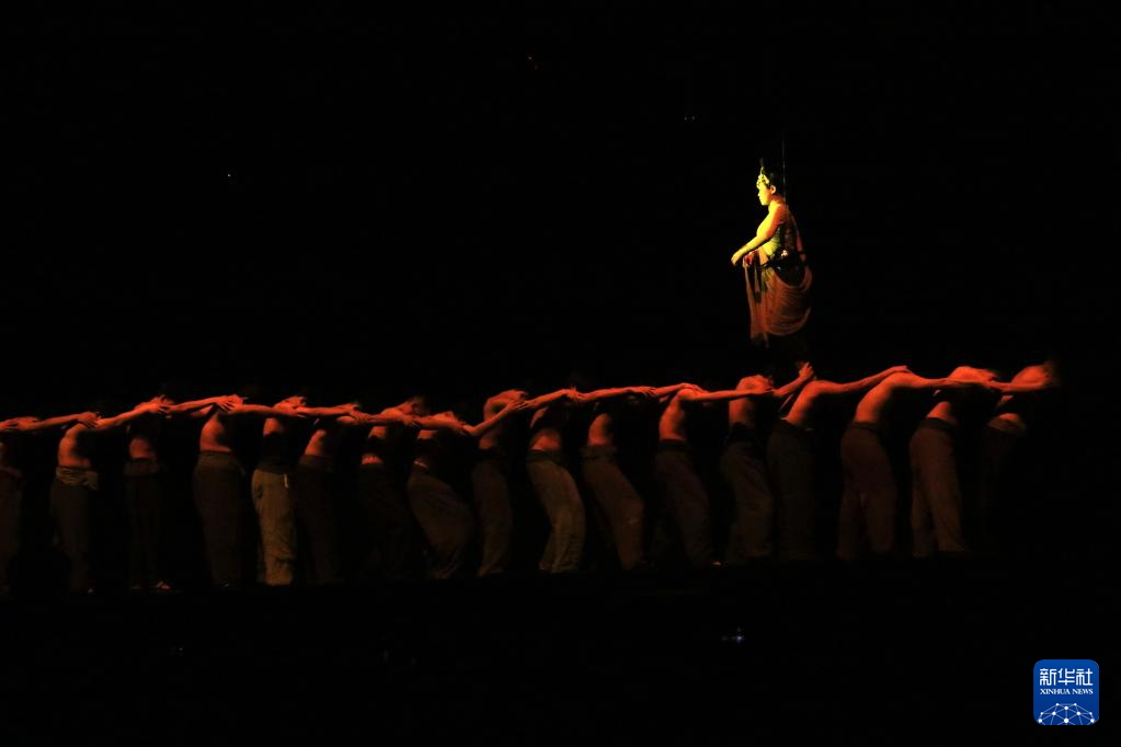 8月9日,演員在《又見敦煌》中表演。新華社記者 馬寧 攝