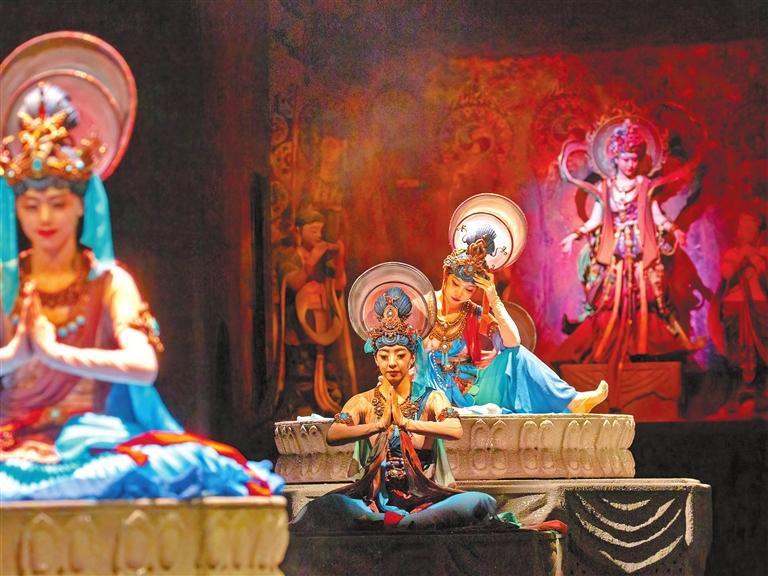 敦煌,這座取之不盡用之不竭的藝術(shù)富礦,這一“頂流”的文化IP,已成為我省旅游演藝創(chuàng)作的發(fā)端。廣大文藝工作者深入挖掘敦煌文化,不斷豐富敦煌旅游演藝市場(chǎng),以藝術(shù)的形式展示“一帶一路”開(kāi)放、包容、合作、共贏的精神,在創(chuàng)新傳承中展現(xiàn)文化自信。