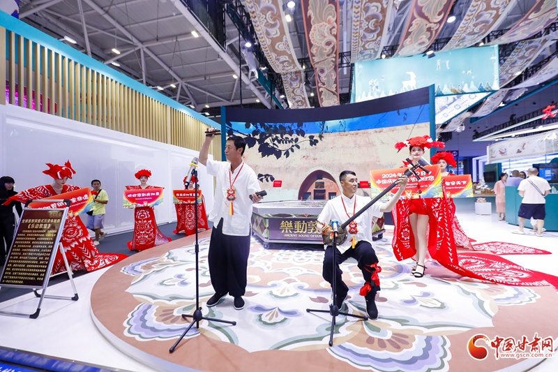 作為“一見慶陽”主題文化日活動的一部分,慶陽剪紙秀+南梁說唱同臺展示,大氣、時尚,盡顯魅力的設(shè)計和展示,淳厚、粗獷,極具特色的吹奏和演唱,現(xiàn)場參觀者或駐足觀賞、或拍照,整個場館淹沒在濃濃的慶陽民俗風(fēng)味里。
