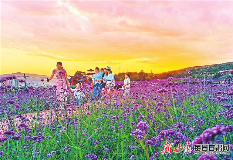 近日,清水縣花舞北山的馬鞭草進(jìn)入盛花期,在晚霞的映襯下,如一幅美麗的畫卷,吸引人們前來(lái)賞花游玩。新甘肅·甘肅日?qǐng)?bào)通訊員 雷金鋒