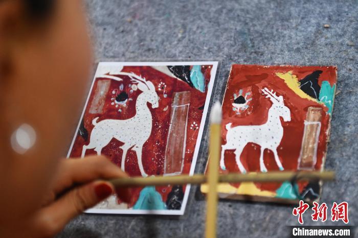 8月20日,甘肅敦煌莫高里工匠村內(nèi),學(xué)員參觀研學(xué)產(chǎn)品。工匠村開(kāi)設(shè)了泥板畫(huà)、彩繪、雕塑制作、剪紙、農(nóng)耕體驗(yàn)等課程,現(xiàn)已發(fā)展成為一個(gè)集敦煌文化講堂、壁畫(huà)書(shū)法研習(xí)、美術(shù)設(shè)計(jì)、彩塑制作教學(xué)、篆刻藝術(shù)、傳統(tǒng)釀酒體驗(yàn)、農(nóng)業(yè)產(chǎn)業(yè)發(fā)展等于一體的多功能實(shí)訓(xùn)基地。中新社記者 李亞龍