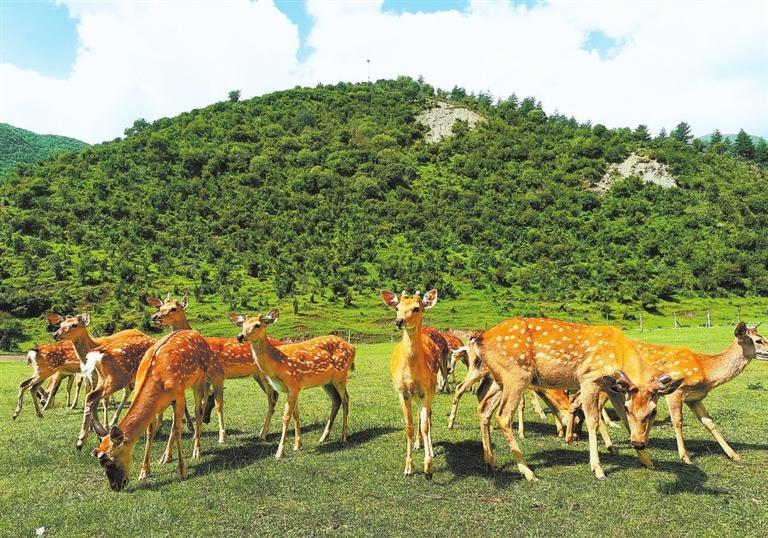 鹿場南環(huán)大山、北繞黃長拉山,是個(gè)天然牧場。慢步走近活潑可愛的梅花鹿,不禁想起“鹿乃仙獸,自能樂性,鹿之一身皆益人”。這是李時(shí)珍在《本草綱目》中對(duì)梅花鹿的評(píng)價(jià)。一直以來,梅花鹿在民間百姓心中都是長壽幸福的象征。