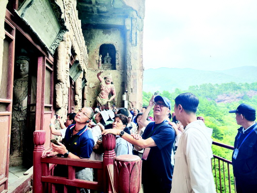 活動當天,來自臺灣文博領域的專家學者一行,懷著對古老文化的敬仰與憧憬,在麥積山石窟感受石窟藝術的獨特魅力、在天水工業(yè)博物館探尋工業(yè)發(fā)展的歷史脈絡、在伏羲廟體悟中華始祖文化的博大精深、在天水市博物館領略豐富的歷史文物承載的歲月記憶、在天水古城品味古色古香的韻味與風情……一系列豐富多彩的文化交流活動,讓他們近距離感受到了古城天水的風景名勝、文化遺產(chǎn)保護傳承及山川風物。