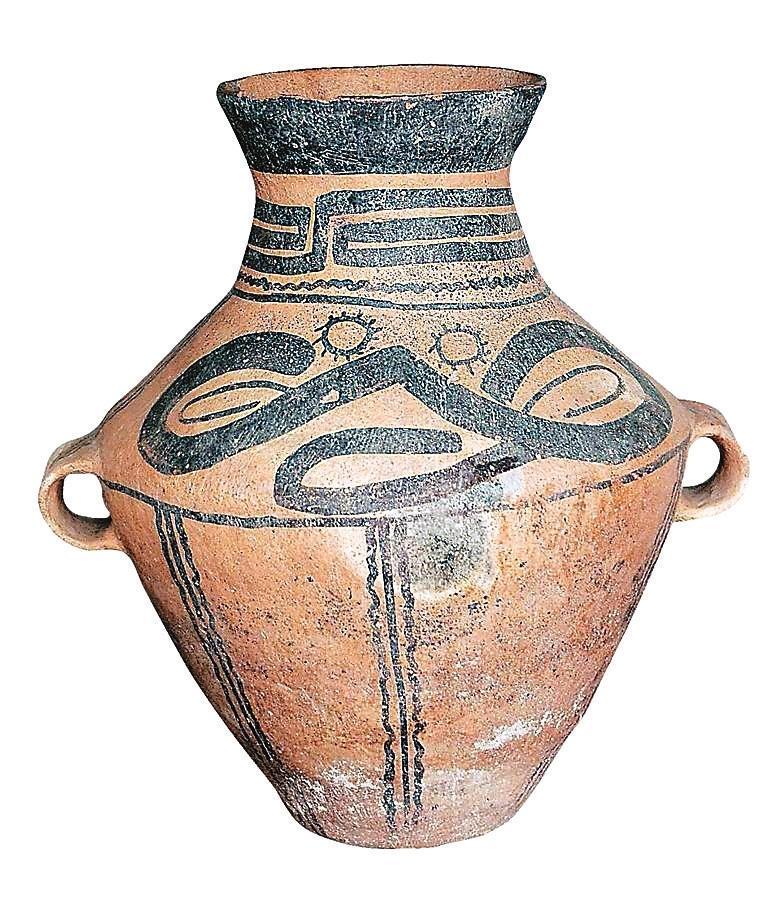 姬家川類(lèi)型雙勾太陽(yáng)紋彩陶罐