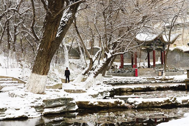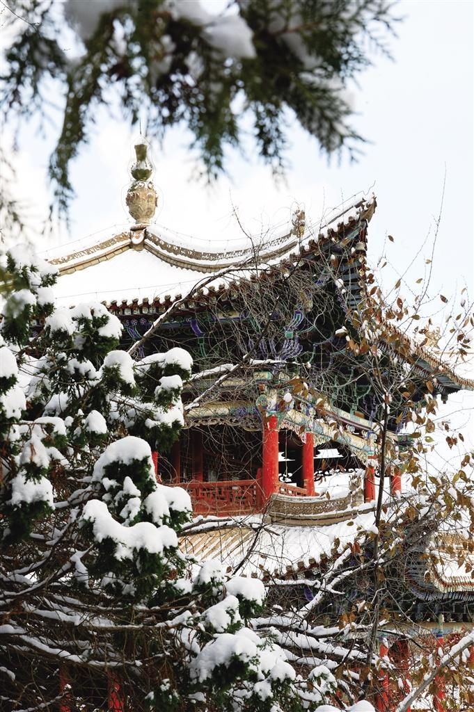11月25日,雪后的蘭州五泉山公園銀裝素裹,迷人雪景如畫。古老亭臺(tái)樓閣紅墻玉頂、參天古樹(shù)玉樹(shù)瓊枝,宛如大地書寫的一幅“水墨丹青”,美不勝收,游客紛至沓來(lái),賞雪、拍照,盡情享受清爽的空氣和潔白的美景。 奔流新聞·蘭州晨報(bào)記者 裴強(qiáng) 攝