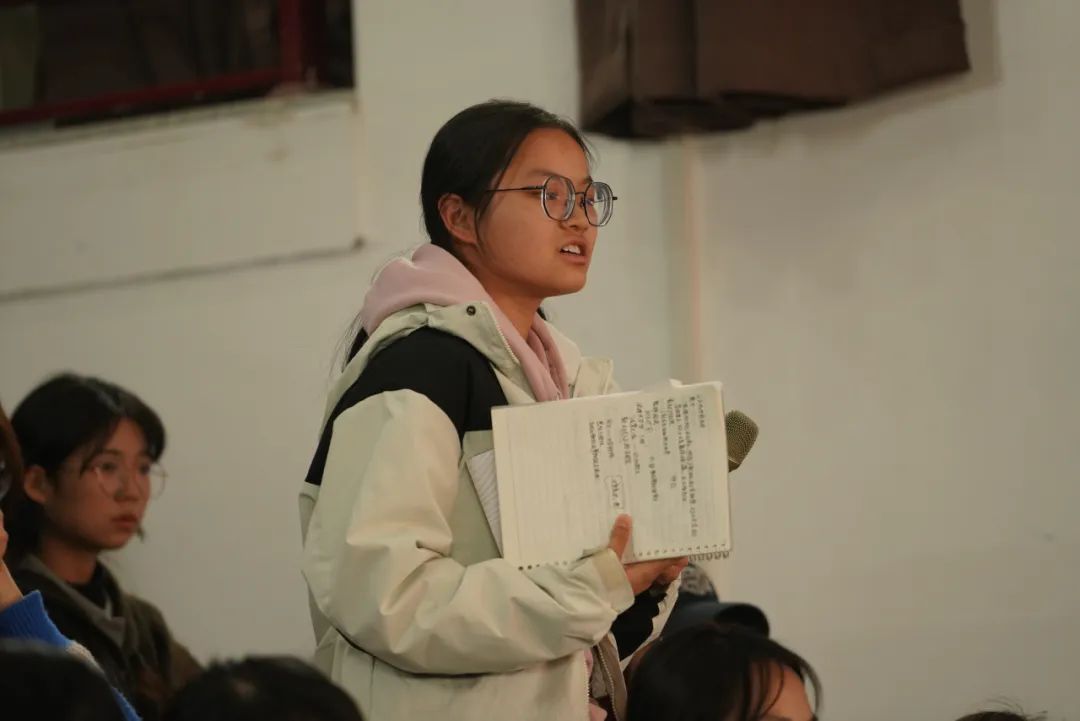 嘉賓發(fā)言環(huán)節(jié)結(jié)束后,同學(xué)們積極提問,林紅衛(wèi)從多個寫作角度解答了大家的困惑。她強(qiáng)調(diào),寫作需要用心觀察生活,通過反復(fù)練習(xí)將情感外化為行動,傳遞生活中的真善美。