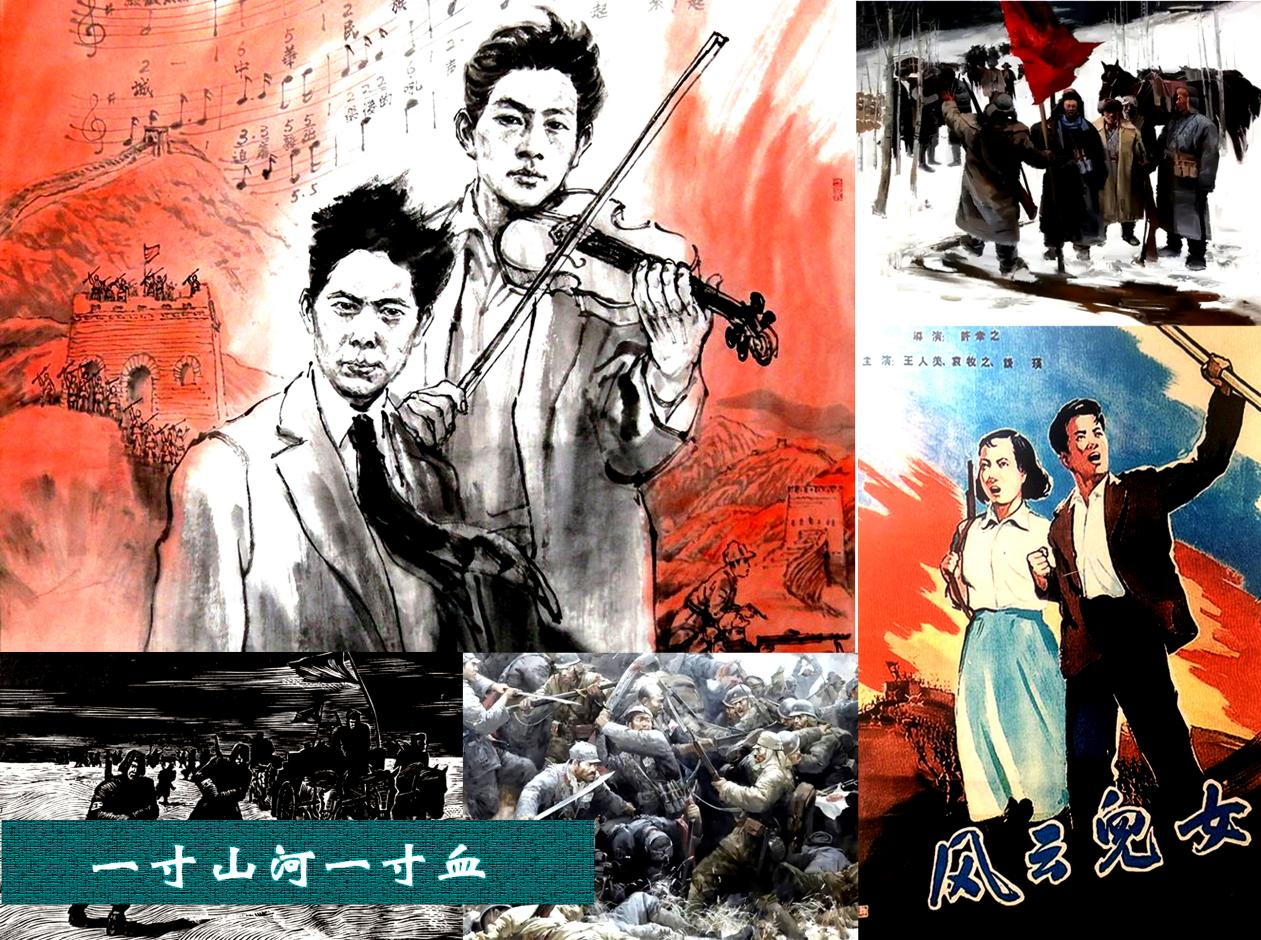 筆者在相關(guān)閱讀中接觸到許多《義勇軍進(jìn)行曲》創(chuàng)作同期的歌曲、誓詞、通電等史料。見到了《義勇軍誓詞歌》《血盟救國軍軍歌》等一些堪稱《義勇軍進(jìn)行曲》雛形的藍(lán)本。當(dāng)讀到其中“起來!起來!不愿當(dāng)亡國奴的人!……用我們身體筑起長城。……前進(jìn)??!前進(jìn)!向前進(jìn)!殺!殺!殺!”;又如“起來!不愿當(dāng)亡國奴的人們,用我們的血肉喚起全國民眾……中華民族到了最危險的時候,起來!起來!”等歌詞時,胸中激情難抑。這些同仇敵愾的時代強(qiáng)音最終集成于田漢、聶耳一九三五年四月完成的電影《風(fēng)云兒女》主題曲《義勇軍進(jìn)行曲》。當(dāng)年五月,隨著電影公映,《義勇軍進(jìn)行曲》迅速傳遍中華大地,成為鼓舞全國人民抵抗日本侵略的戰(zhàn)斗號角,后來又被確定為新中國的國歌并寫入憲法。筆者撫今追昔,萬千感慨,思如泉涌,寫就兩首《七律》,志念《義勇軍進(jìn)行曲》九十周年。