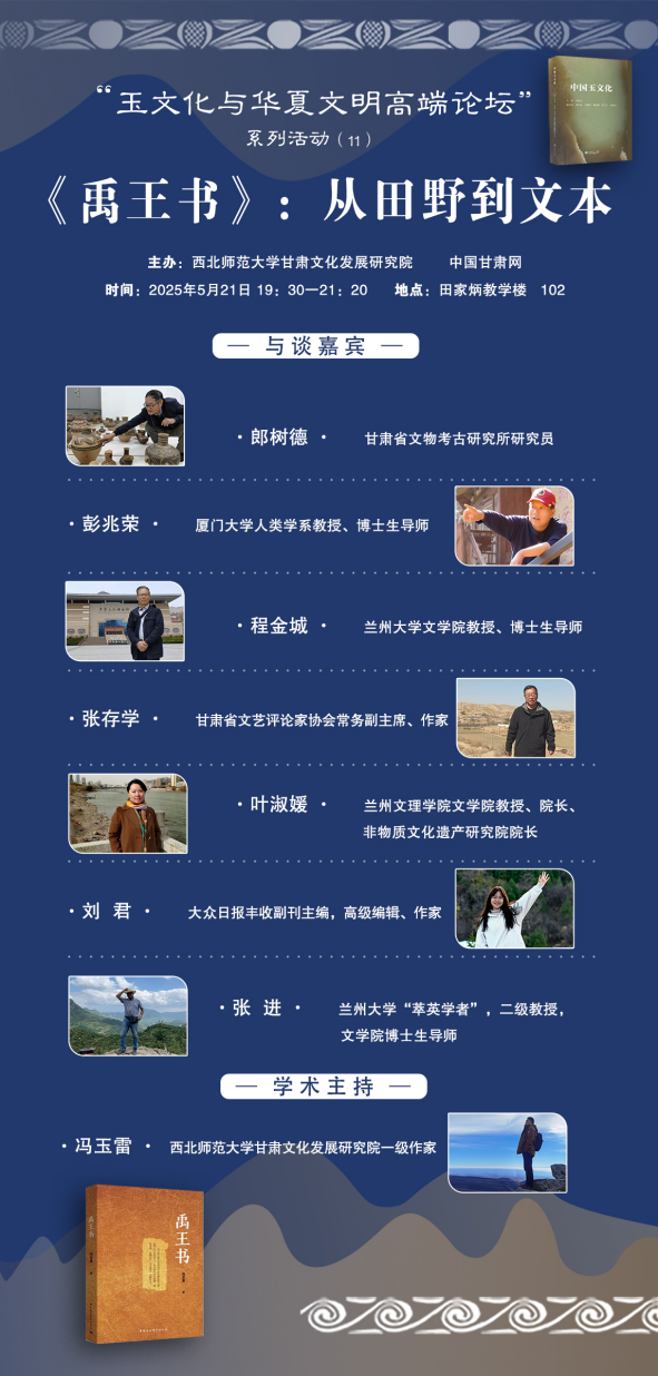 2025年5月21日,由西北師范大學(xué)甘肅文化發(fā)展研究院和中國(guó)甘肅網(wǎng)聯(lián)合主辦的玉文化與華夏文明高端論壇系列活動(dòng)之“《禹王書(shū)》:從田野到文本”在西北師范大學(xué)成功舉行。