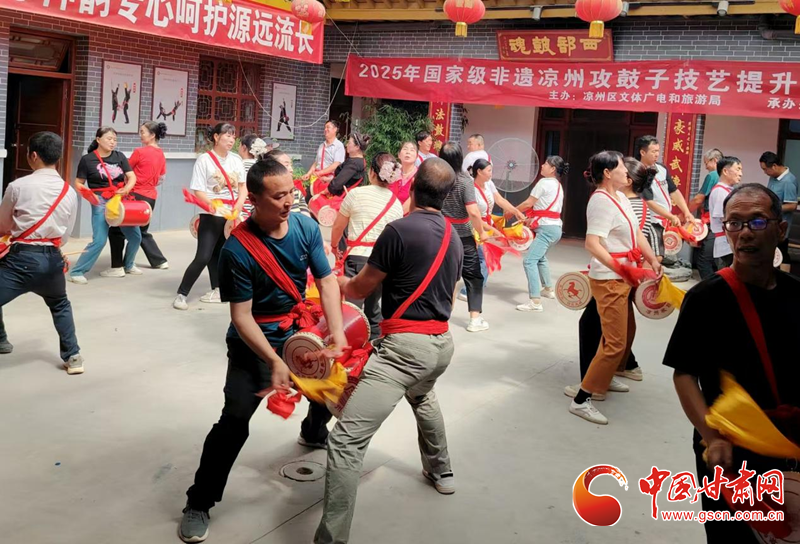 中國甘肅網(wǎng)7月19日訊(西北角·中國甘肅網(wǎng)記者 張振國 文/圖)為扎實推進國家級非物質(zhì)文化遺產(chǎn)項目傳承與保護,系統(tǒng)提升涼州攻鼓子團隊專業(yè)水平,發(fā)展壯大攻鼓子傳承人隊伍。7月16日,由涼州區(qū)文體廣電和旅游局主辦、涼州區(qū)文化館承辦的2025年涼州攻鼓子傳承人技藝提升培訓班分別在“涼州攻鼓子傳習所”和“四壩鎮(zhèn)非遺民俗文化館”開班。