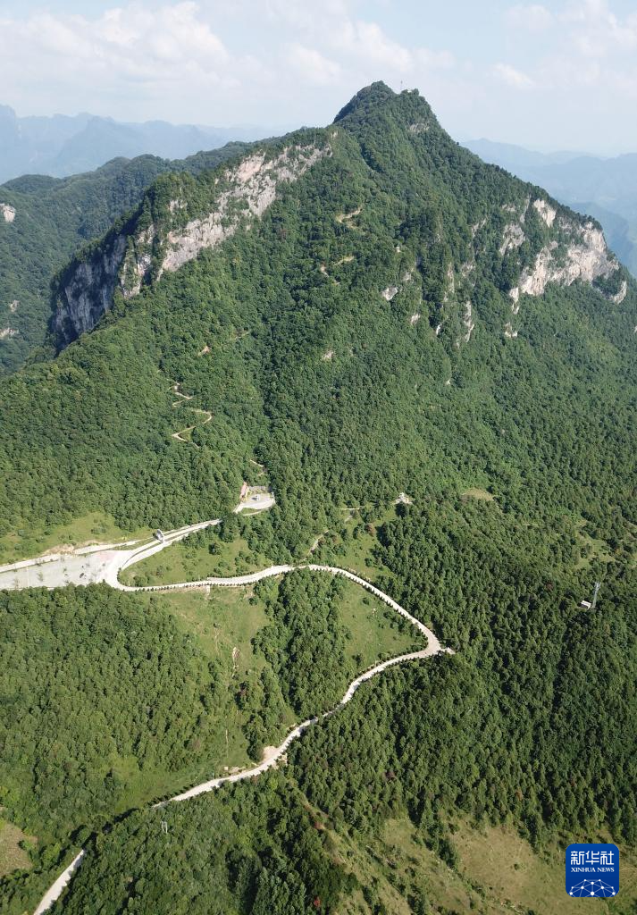 7月14日拍攝的青泥嶺主峰鐵山和鄉(xiāng)村道路(無人機照片)。新華社記者 馬寧 攝