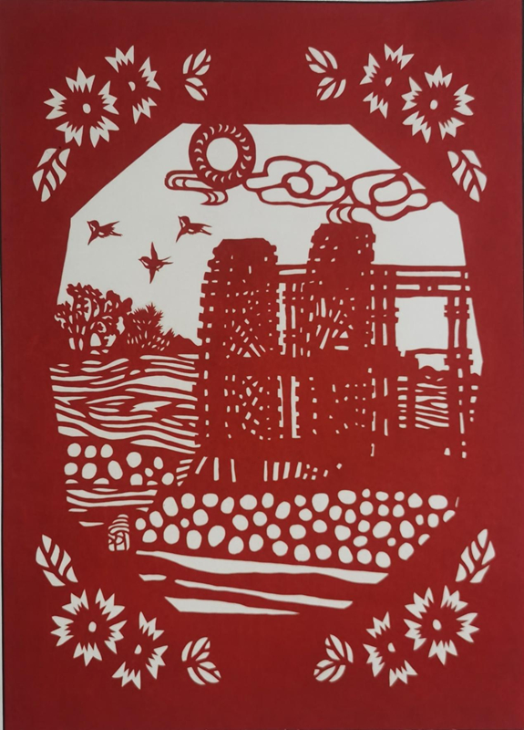 葉長友剪紙《黃河水車》《蘭州黃河鐵橋》