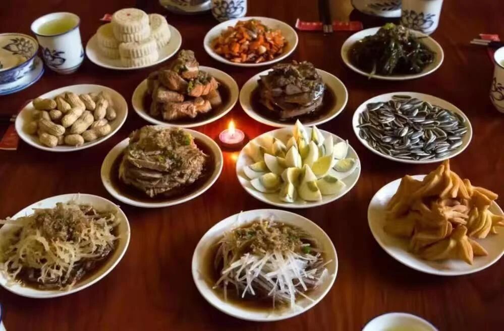 ——“十三花”,寓意胡太后以民為本的執(zhí)政理念;城內(nèi)四個葷菜,寓意人民四季安康、幸福美滿;骨頭碟和懸肉碟,寓意父骨母血、尊老孝親;肝子碟和雞蛋碟,寓意肝膽相照、心心相??;四個水菜碟子水圍城,寓意順風順水、四方平安;城外瓜籽花生碟,寓意多子多福、多祿多壽;路食和果子,寓意衣豐食足、一路平安;最中間一個大碟全盤為中心,寓意團結(jié)聚力、天下一心。