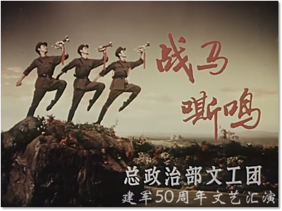 有趣的是,膠片并非被動(dòng)記錄,它悄然行使著選擇的權(quán)力——它決定了后世的人們將以何種視角、何種景別來銘記《戰(zhàn)馬嘶鳴》。在鏡頭中定格下來的膠片拷貝,就此定義了經(jīng)典的面貌。從舞臺(tái)到膠片,作品完成了一次關(guān)鍵的媒介化轉(zhuǎn)身,從一場(chǎng)限時(shí)演出,變身為一個(gè)時(shí)代的文化符號(hào)。這使軍藝精神在沒有數(shù)字媒體的時(shí)代,得以廣泛流傳和保存。