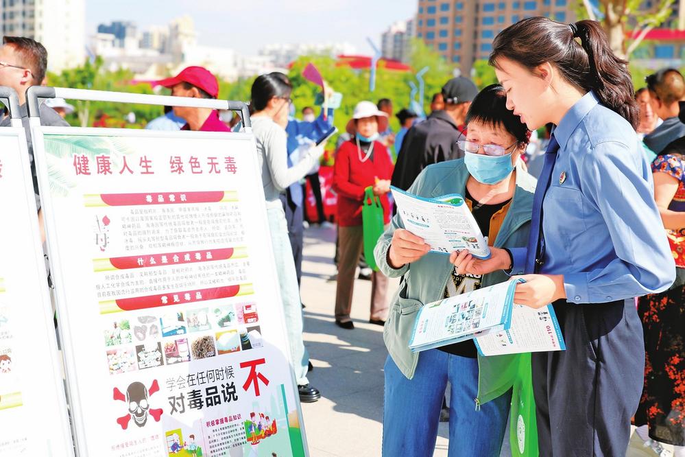 6月26日,臨洮縣檢察院組織干警到武昭公園開(kāi)展禁毒宣傳活動(dòng)。 新甘肅·甘肅法治報(bào)通訊員唐曉博攝