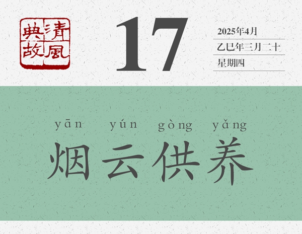 煙云,即山水風(fēng)景。供養(yǎng),即陶冶滋養(yǎng)。“畫中煙云供養(yǎng)”的原意是,黃公望和米友仁之所以貌如童顏,神明不衰,是因?yàn)槠渖剿嬛袩熡隄鳚?、薄霧繚繞的意境滋養(yǎng)了他們。后世即以“煙云供養(yǎng)”為典,喻美好的自然環(huán)境,可以舒暢人的心情,撫慰人的精神。這就是為什么人們把自然環(huán)境好的地方稱作“養(yǎng)生之地”的原因。錢大昕《梁山舟前輩八十》詩:“占得西湖第一峰,煙云供養(yǎng)幾千重。門懸曼碩山舟字,人識坡公笠屐容。”