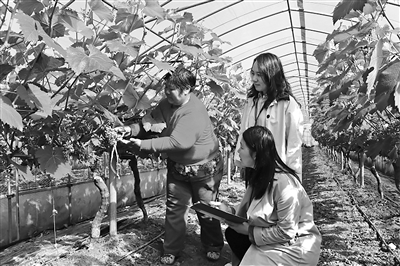 江蘇省東臺(tái)市紀(jì)委監(jiān)委開展護(hù)航農(nóng)村特色產(chǎn)業(yè)發(fā)展專項(xiàng)監(jiān)督,深入查糾鄉(xiāng)村振興項(xiàng)目資金監(jiān)管和涉農(nóng)補(bǔ)貼發(fā)放等方面存在的問題。圖為該市紀(jì)委監(jiān)委工作人員在葡萄種植大棚走訪了解相關(guān)情況。王茜 攝