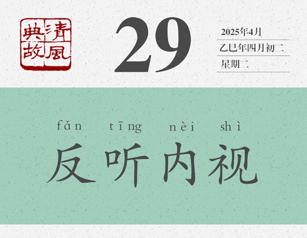 后人將“反聽之謂聰,內視之謂明”縮減為“反聽內視”四個字,并以此為典提醒人們,對外要虛心聽取別人的批評意見,對內要及時反省自己的所作所為?!逗鬂h書·王允傳》:“夫內視反聽,則忠臣竭誠;寬賢矜能,則義士厲節(jié)。”