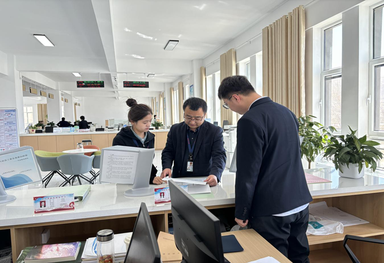 圖為民勤縣紀(jì)委監(jiān)委干部在縣稅務(wù)局辦稅服務(wù)大廳對(duì)企業(yè)審批服務(wù)、惠企政策落實(shí)等工作情況開展監(jiān)督檢查。(馬龍 攝)