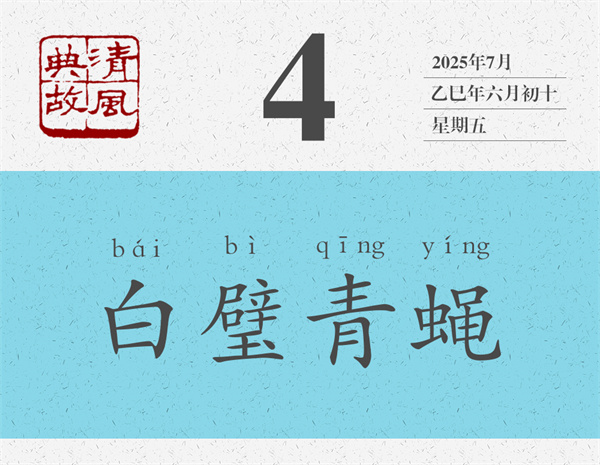 一顆老鼠屎,壞了一鍋湯。同樣,一點蒼蠅屎,也能使素練、白璧受到不可挽回的玷污。任何時候,都有好進讒言的人,今天說這個人的壞話,明天說那個人的壞話,忙得不亦樂乎,其蠅營狗茍、猥猥瑣瑣之行徑,讓人生厭,也讓人切齒。李白曾在《雪讒詩贈友人》詩中質問:“白璧何辜,青蠅屢前?”質問不是終點,更應當讓他們茍且行為大白于世,讓損害別人名聲、敗壞社會風氣者,無地自容,無所遁形。