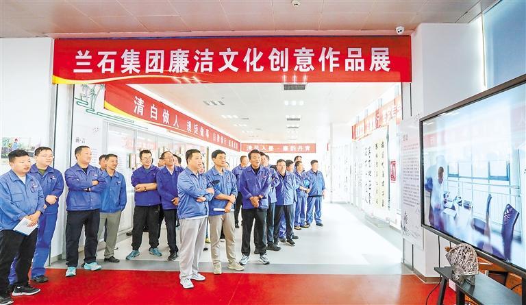 蘭石集團黨員干部職工參觀廉潔文化創(chuàng)意作品展。蘭石集團紀(jì)委供圖