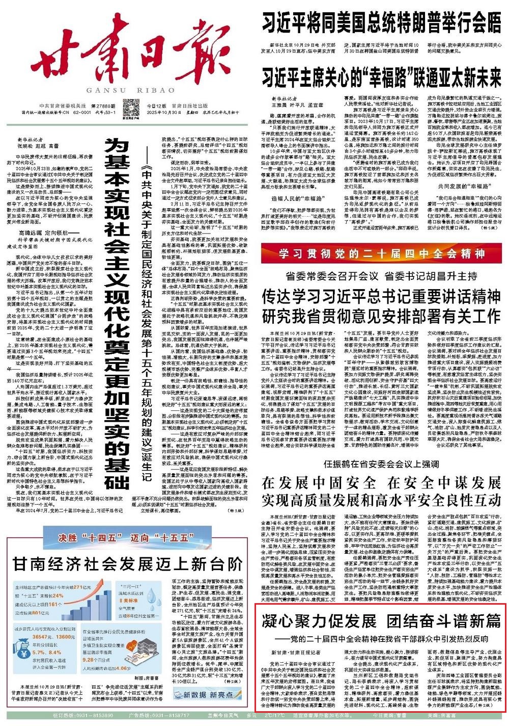 黨的二十屆四中全會審議通過了《中共中央關(guān)于制定國民經(jīng)濟(jì)和社會發(fā)展第十五個五年規(guī)劃的建議》,擘畫了未來五年發(fā)展的宏偉藍(lán)圖。連日來,我省廣大干部群眾深入學(xué)習(xí)黨的二十屆四中全會精神,大家紛紛表示,要自覺把思想和行動統(tǒng)一到黨中央決策部署上來,將全會精神轉(zhuǎn)化為推動我省高質(zhì)量發(fā)展的強大動力和生動實踐,凝心聚力,接續(xù)奮斗,奮力譜寫中國式現(xiàn)代化甘肅篇章。