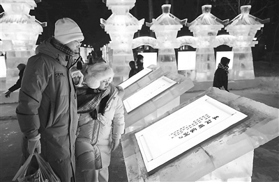 黑龍江省哈爾濱市依托冰雪文化資源創(chuàng)建廉潔品牌,打造含有清廉元素的冰雪景觀園,讓市民游客在賞冰樂(lè)雪的同時(shí)受到廉潔文化的浸潤(rùn)。圖為市民在冰雪景觀前駐足。 劉萌 攝
