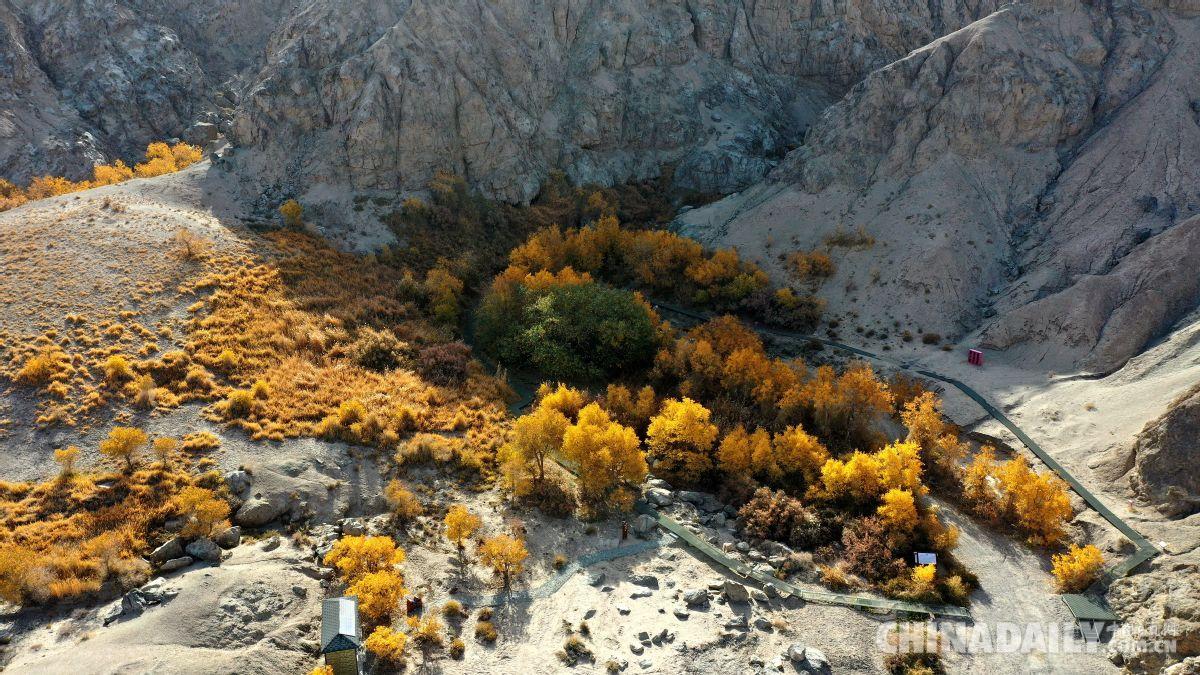 金秋十月,位于世界文化遺產(chǎn)敦煌市懸泉置遺址的懸泉谷內(nèi)的胡楊、蘆葦?shù)葮淠局脖槐磺锷秩荆吧绠?,美不勝收。?jù)介紹,甘肅省敦煌市懸泉置遺址緊靠三危山山口。因水從高臺流下,懸空入潭,故名懸泉,敦煌當(dāng)?shù)厝怂追Q“吊吊水”,又稱貳師泉。