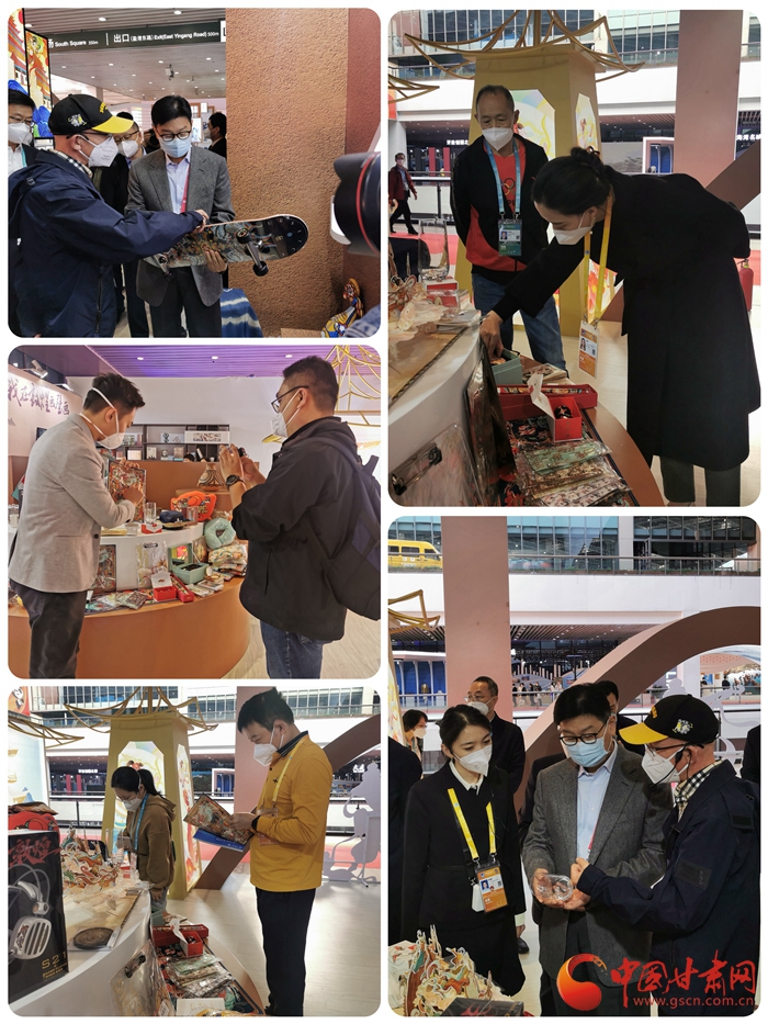 此次在酒泉展臺上展出的有極樂系列滑板、雙截棍、九色鹿系列胸針、手提包、伎樂天系列鑰匙扣、冰箱貼、飛天系列抱枕、書簽等,新潮的文創(chuàng)產(chǎn)品也拉近了敦煌文化與當(dāng)代人的距離,也吸引了眾多參展商和媒體記者駐足參觀和拍攝報(bào)道。