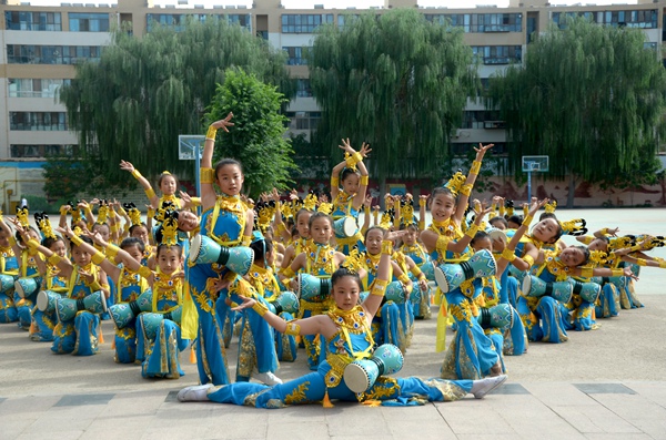敦煌市南街小學(xué)學(xué)生排練舞蹈《鼓樂(lè)敦煌》。敦煌市委宣傳部供圖