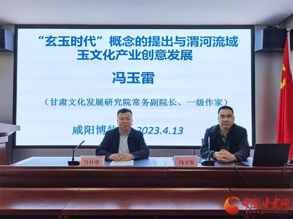 中國(guó)甘肅網(wǎng)4月13日訊 為進(jìn)一步促進(jìn)博物館學(xué)術(shù)研究交流創(chuàng)新,激發(fā)博物館發(fā)展活力,持續(xù)推動(dòng)博物館高質(zhì)量發(fā)展,陜西咸陽博物院于4月13日下午3點(diǎn)舉辦第二期“咸博大講堂”專題講座,甘肅文化發(fā)展研究院常務(wù)副院長(zhǎng)、一級(jí)作家馮玉雷作了題為《“玄玉時(shí)代”概念的提出與渭河流域玉文化產(chǎn)業(yè)創(chuàng)意發(fā)展》的學(xué)術(shù)報(bào)告。咸陽博物院院長(zhǎng)馬社強(qiáng)主持講座。