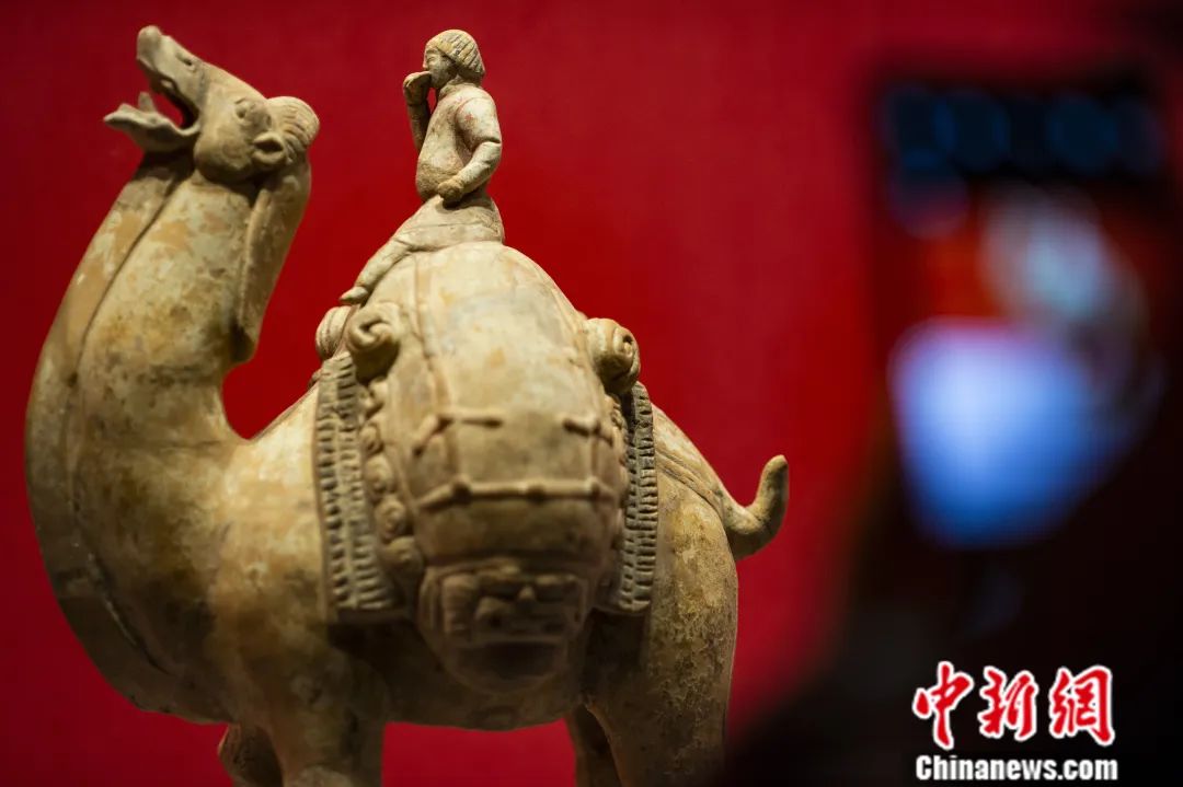 山西博物院藏隋代“胡人吃餅騎駝俑”。侯宇攝