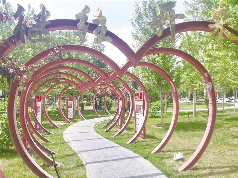 高速南口進(jìn)蘭州至工坪路,有一片綠地格外醒目,這里便是頗具特色的中車(chē)·拾光公園,是我市實(shí)施“退城入園”后首個(gè)在廠區(qū)原址開(kāi)發(fā)建設(shè)的文化游園。