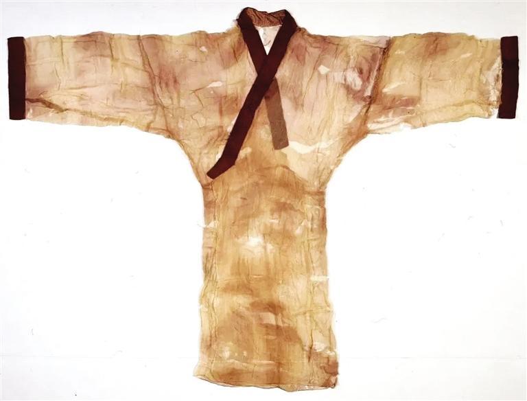 值得一提的是,在馬王堆漢墓出土的文物中,最受矚目的是做工精細和舉世聞名的素紗單衣,該件傳世珍寶僅重49克,相當于一個普通雞蛋的重量,乃西漢時期紡織巔峰之作。素紗單衣衣長128厘米,通袖長190厘米。右衽直裾,重49克。漢代文獻描述其薄如蟬翼,輕若云霧。