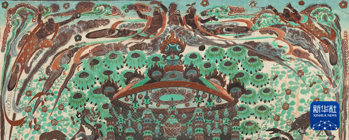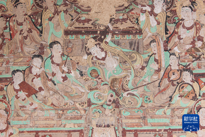 莫高窟第112窟-壁畫-主室北壁-報恩經(jīng)變之樂舞圖。(敦煌研究院供圖)