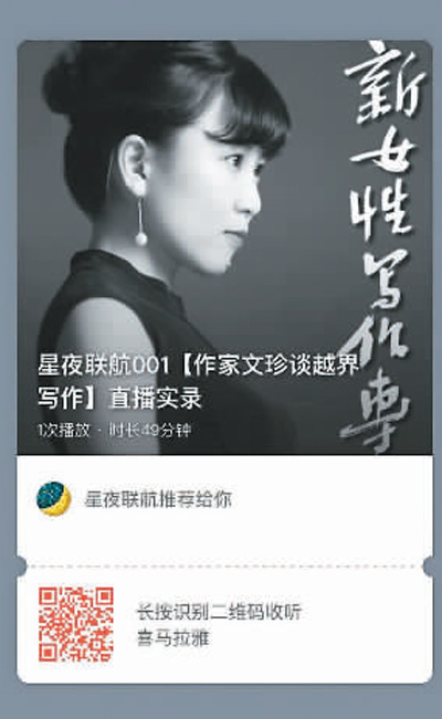 碼字人書店則聯(lián)合書萌、做書、小眾書坊、林贊說、生活便簽等書店、圖書策劃、影像文化品牌和推廣機(jī)構(gòu),借助文化出版機(jī)構(gòu)的支持,共同推出“星夜聯(lián)航”,在全國書店、文藝社群線上同步直播。李蘇皖告訴本報(bào)記者,3月的主題是“女性·生長”。3月7日晚第一期,女作家文珍做線上分享會“我的閱讀和越界寫作”,當(dāng)天有41個(gè)書店及社群、近萬人參與;第二期3月14日晚,詩人里所線上分享“寫作時(shí)是否要在意女性身份”,參與的書店和社群增加到69個(gè)。