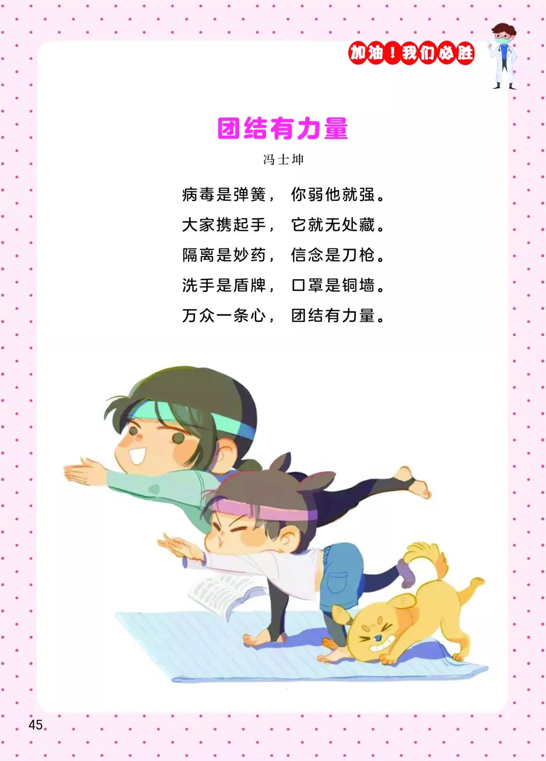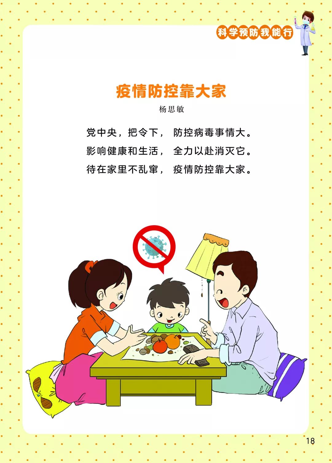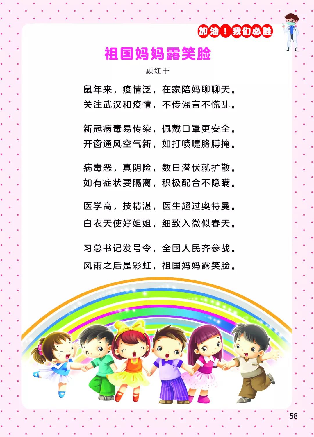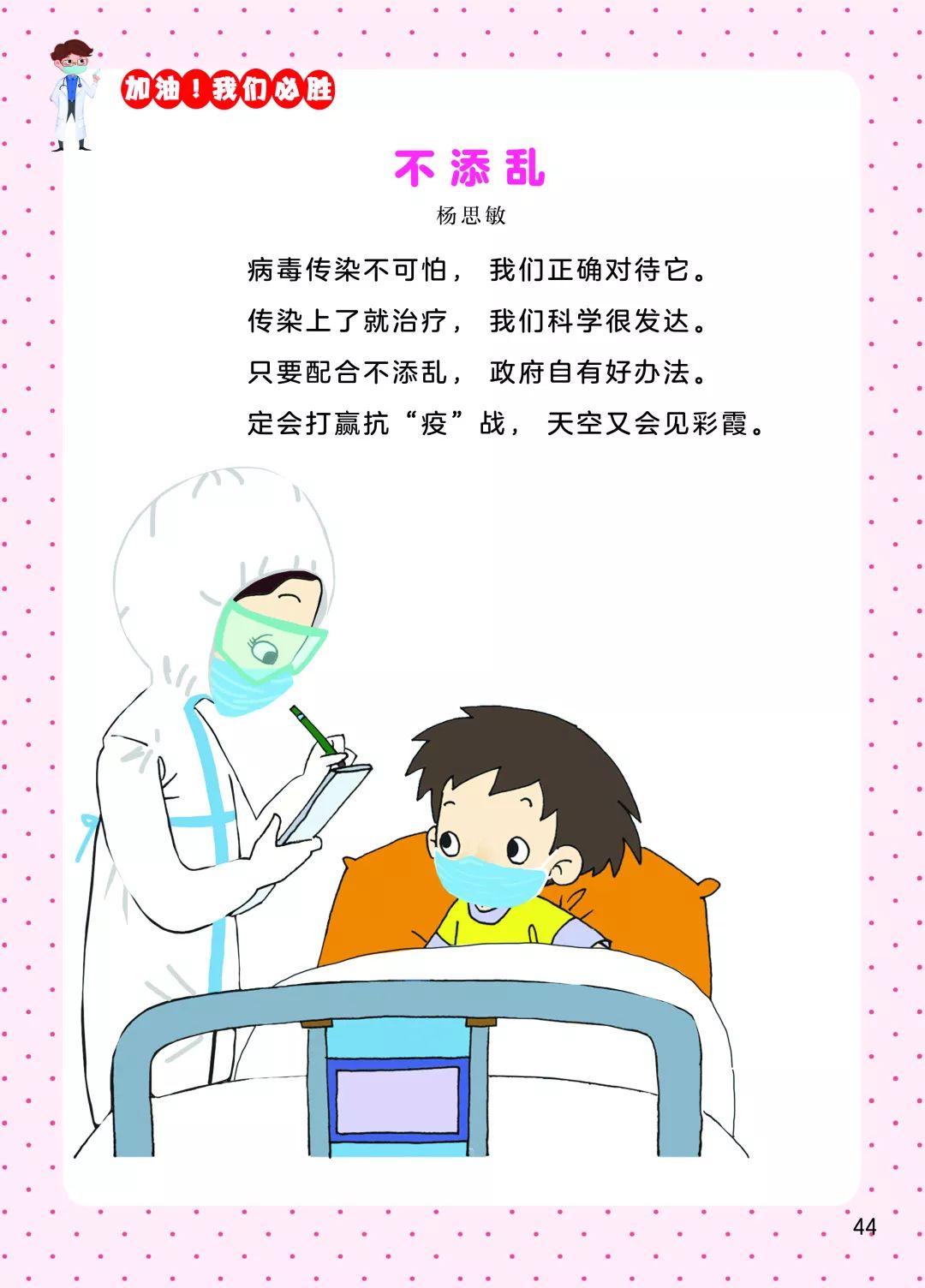新冠肺炎疫情爆發(fā)以來(lái),全國(guó)人民積極投入到疫情防控阻擊戰(zhàn)中,孩子們、兒童文學(xué)作家也紛紛發(fā)聲,創(chuàng)作了大量?jī)?yōu)秀的童謠。每一首童謠是一聲鼓勁的吶喊,匯集起來(lái)就是嘹亮的戰(zhàn)歌;每一首童謠點(diǎn)亮一束希望的光,光束匯聚就是光明的未來(lái)。