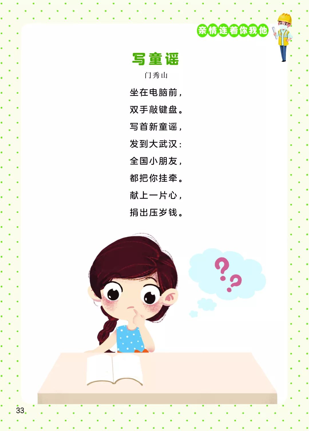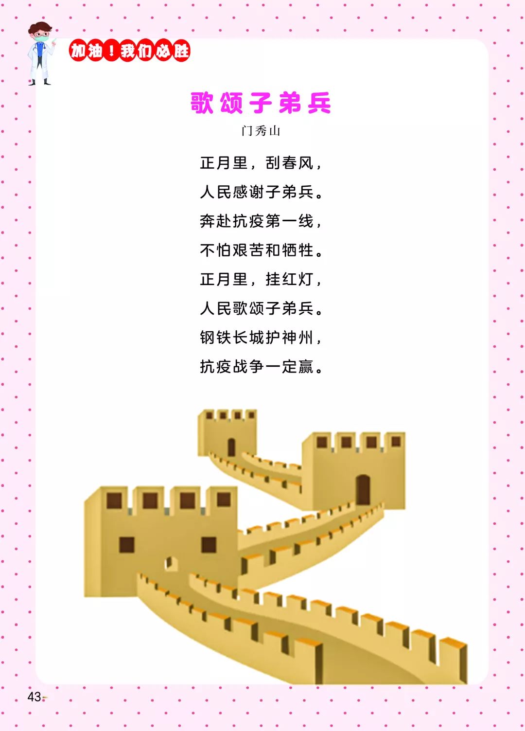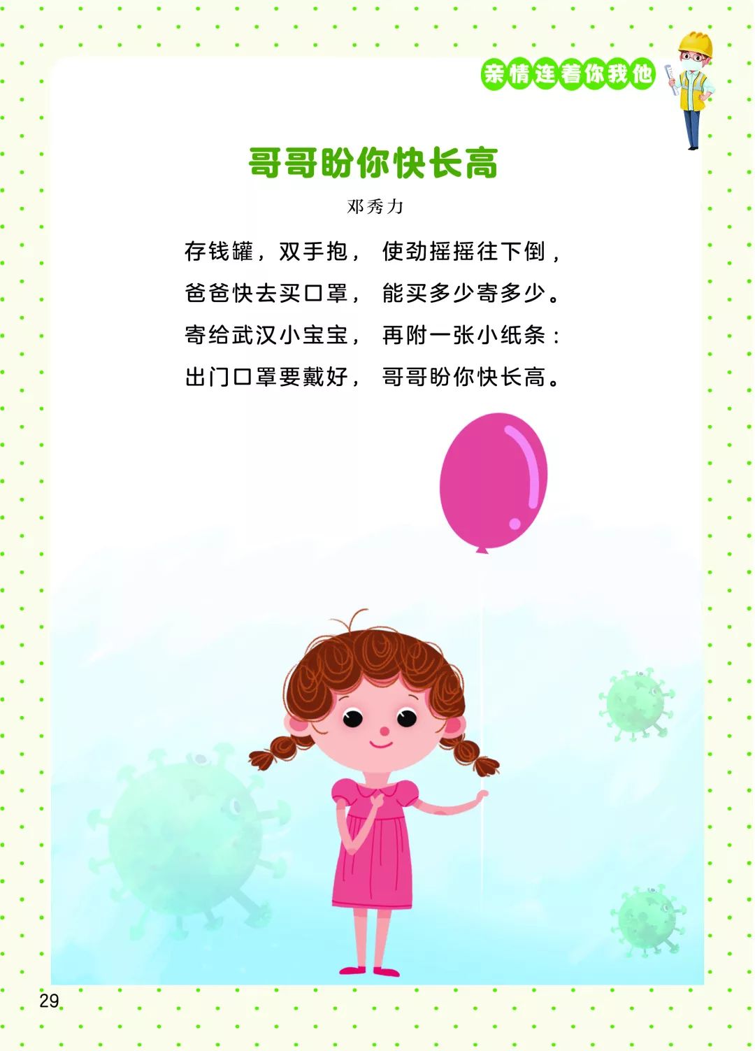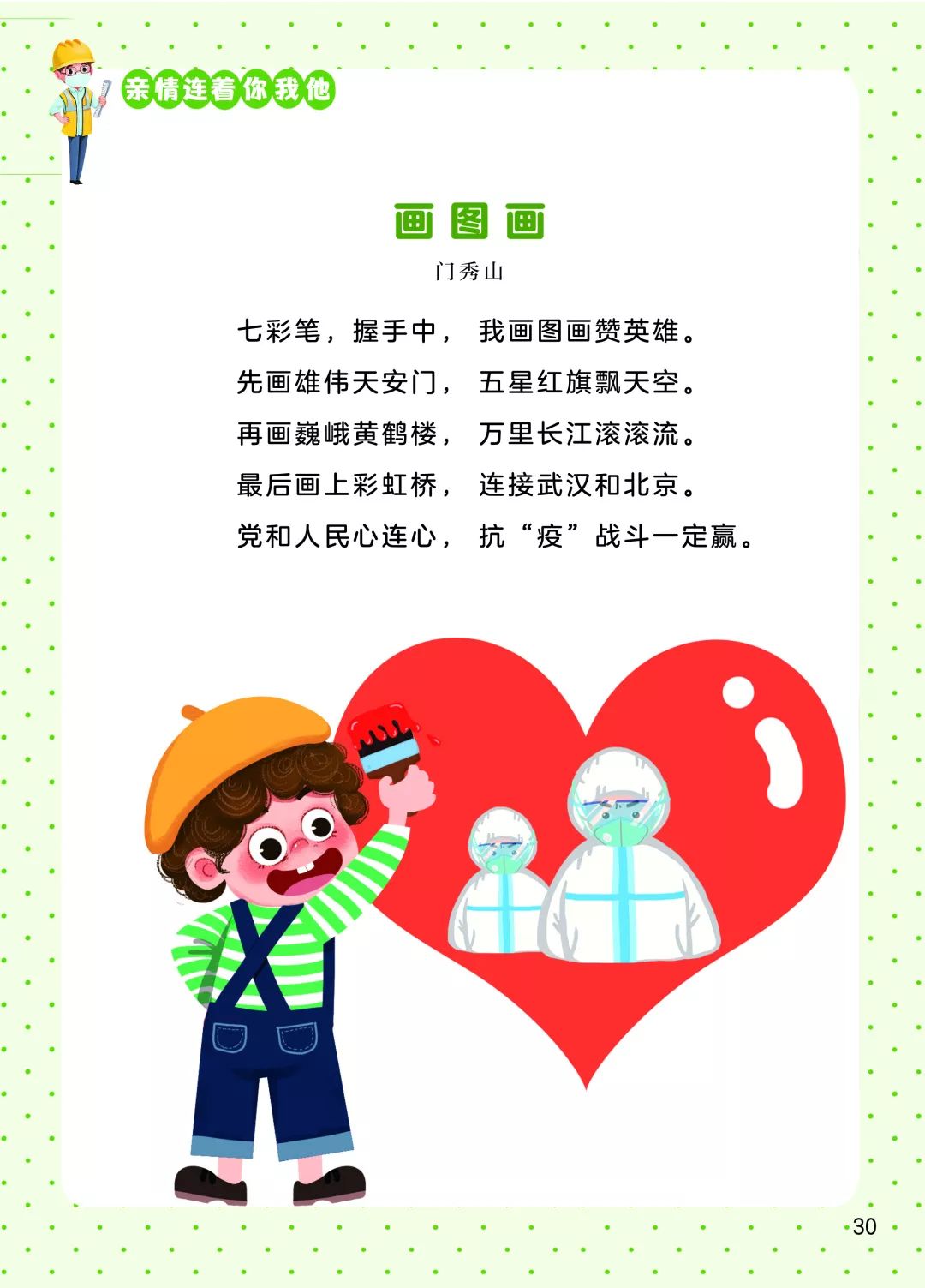 新冠肺炎疫情爆發(fā)以來(lái),全國(guó)人民積極投入到疫情防控阻擊戰(zhàn)中,孩子們、兒童文學(xué)作家也紛紛發(fā)聲,創(chuàng)作了大量?jī)?yōu)秀的童謠。每一首童謠是一聲鼓勁的吶喊,匯集起來(lái)就是嘹亮的戰(zhàn)歌;每一首童謠點(diǎn)亮一束希望的光,光束匯聚就是光明的未來(lái)。